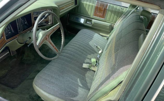 A few hours of detailing this engine and engine compartment would have made a big difference in the presentation, but that’s usually the case. This is Pontiac’s 400-cu.in. OHV V8 with a four-barrel carburetor, which was factory-rated at 200 horsepower and 320 lb-ft of torque when new. It’s backed by a THM-400, and the seller says it runs, drives, and stops well, has new brakes/calipers/hoses on the front, a new alternator, plugs, and transmission service. Would you fix the damage and repaint this Bonneville, or just keep it maintained and drive it?