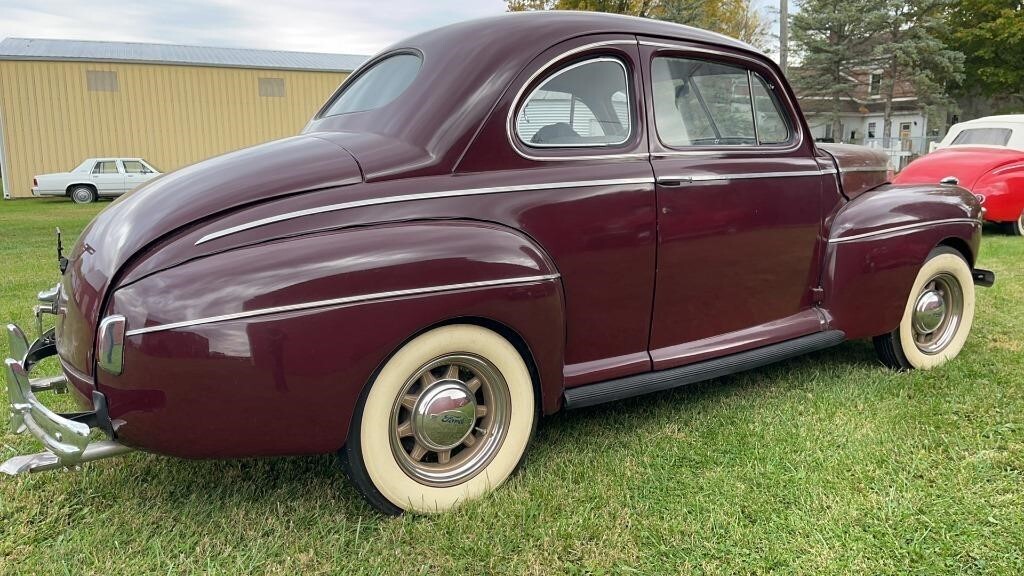 If this little 41 Coupe goes for under 5 K someone is getting an exceptional buy! I love the fat fender Fords 1941 to 1948, it started when I was a kid and my dad had a 46 Ford, I loved riding in that car. I have since owned a couple more and had fun building them and driving them. As for the wheels on this car it’s hard to say with just pictures. I am guessing an artillery wheel with a 41 hub cap and chrome trim rings.