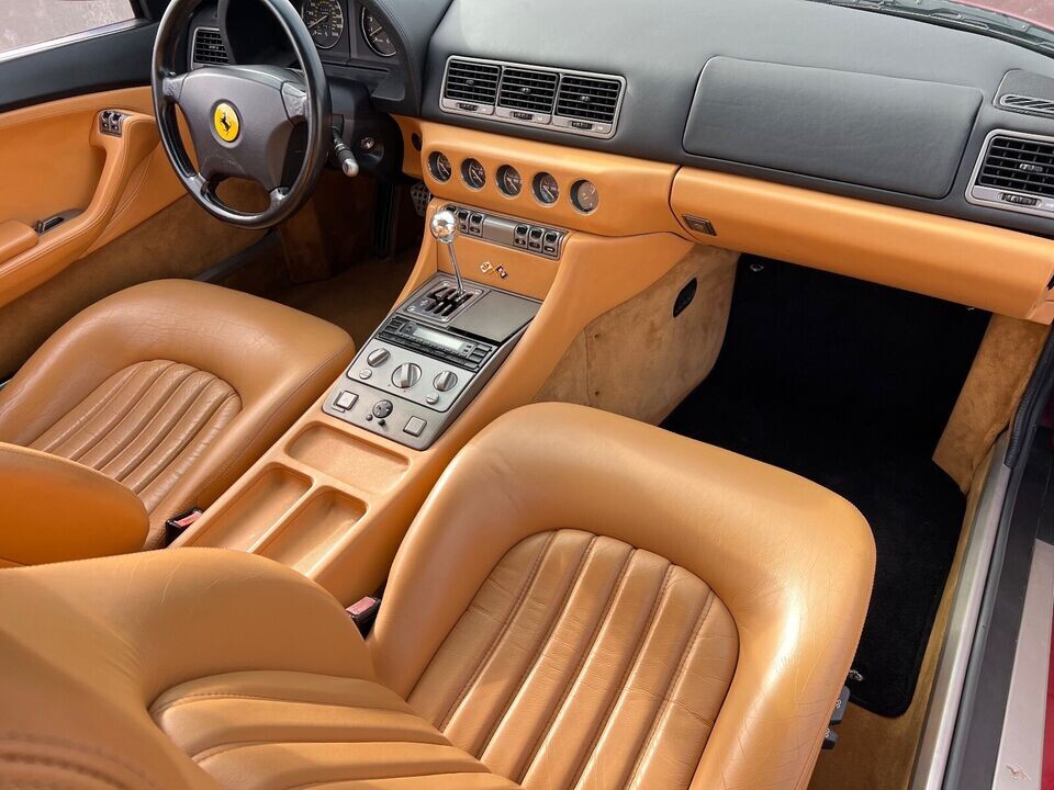 Ferrari’s V12s are legendary. Designs by Colombo, Lampredi, and Jano supplied Ferrari to the end of 1989 when its 5.0-liter Colombo closed out production in the 412 grand touring four-seater. A brief hiatus – sans V12 – ensued in Ferrari’s grand touring market. The new 5.5-liter Tipo F116 arrived in 1992 with a 65-degree vee, alloy construction, dual overhead cams, four valves per cylinder, dry sump lubrication and Bosch Motronic fuel management. A six-speed manual with a gated shift brings power to the wheels, and speaking of power, there is plenty: Output is 440 hp, with a stupendous 406 lb-ft of torque. This family car jets from zero to sixty in about five seconds. Top speed is 190 mph and once you reach about 60 mph, a rear spoiler in the undercarriage actuates to provide downforce. This car’s odometer reads 45,000 miles.