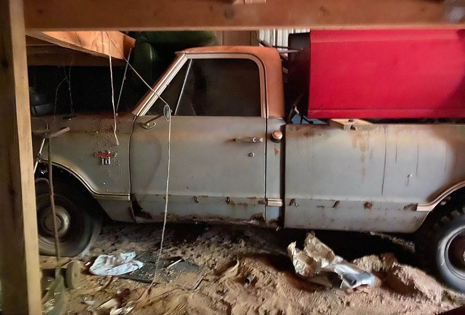 This one is part of the C/K series of trucks that GM built, and it looks to be from the second generation of 1967-72. While it’s indoors now, it may have been relocated from outdoors as there is a fair amount of rust along the rocker panels. There also appears to be a complete spare bed sitting upside down on top of it.
