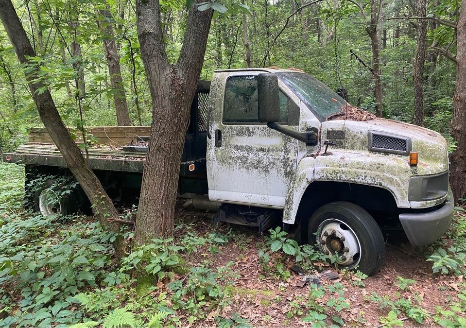 I can’t make out the roots of this one. It looks like it could be a diesel built to haul heavy objects and the styling looks like the 1990s (?), which would make this the newest vehicle in the collection. It, too, has been outdoors for some time and mildew has begun to creep in.