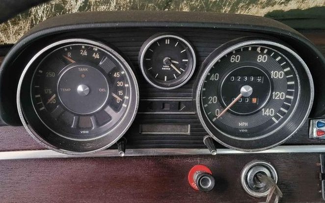 Remember the “sinkometer” from the Midget post? This has the “bird crap,,meter”. This only perpetuates the sterotype, “found in a barn”, like that adds value, when hose the dang thing off,,sheesh,,anyway, fantastic cars. Now my old man, yeah, enough said about him, but he did appreciate nice cars. He was a fool to exclude M-B from his list, I’m sure he would have appreciated them, but Germany had too many open wounds for that to happen. I think parts would have to be expensive, but I heard, German cars have the best vintage parts setup, unlike the Asians that instructed their dealers to throw the stuff away, but won’t get into that. Some of the best cars in the world, right here. Heck, I bet the freakin’ clock still works.