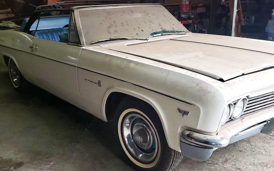 We frequently feature 1966 Chevrolet Impala on Barn Finds. And why not, there were only about 775K built that year. And 38K of those were convertibles such as this Grants Pass, Oregon resident. Listed as grandpa’s car (but whose grandpa?) it’s also claimed to be a barn find that’s now for sale. Let’s see what grandpa left behind. This Chevy drop-top is available, here on craigslist for $25,000, OBO. Thanks to T.J. for this tip!