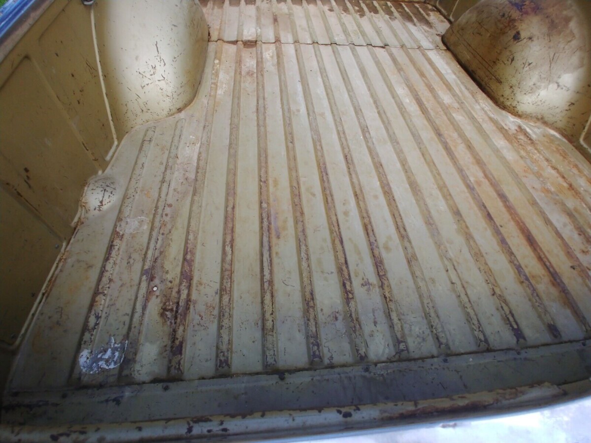 The seller tells us that this Chevy has been sitting for 35 years and it’s rust-free – other than the visible surface rust, that is. That said, it appears that some may be blooming in the passenger-side fender leg – it would be a miracle, actually, if that weren’t the case. Claimed to be a California car, and the protect-o-plate bears that out, this one has been parked in dry Florida storage for the last five. There is an image in the listing of this Camino wearing a camper enclosure but it has been removed for a full car review – it’s not said if it’s included in the sale. And with it out of the way, it can be seen that the cargo bed appears to be sound.