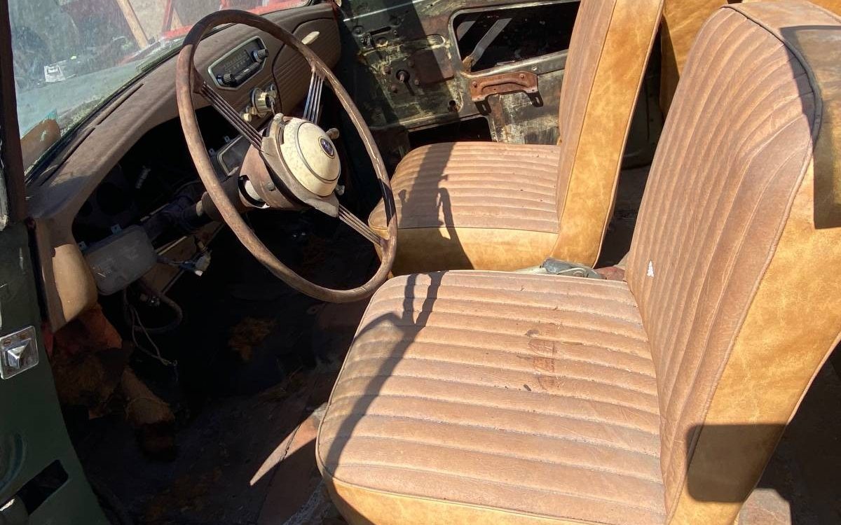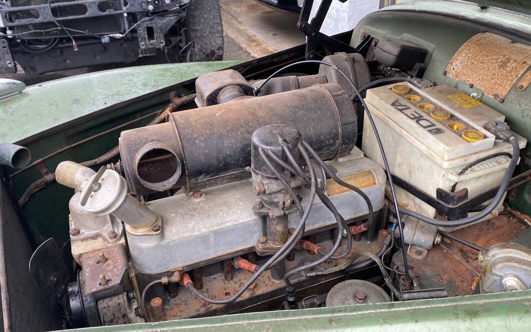 The interior is a surprise as the upholstery looks newer than 1952. There’s no reference to its condition but it’s not hard to imagine that there was some renewal that occurred sometime before the big snooze. There are some miscellaneous pieces in the back seat and maybe included in those items are the missing door cards. The seller tells us that this is a solid, original and complete car except that the speedometer is missing – how odd, maybe it got boosted for another Sunbeam project.