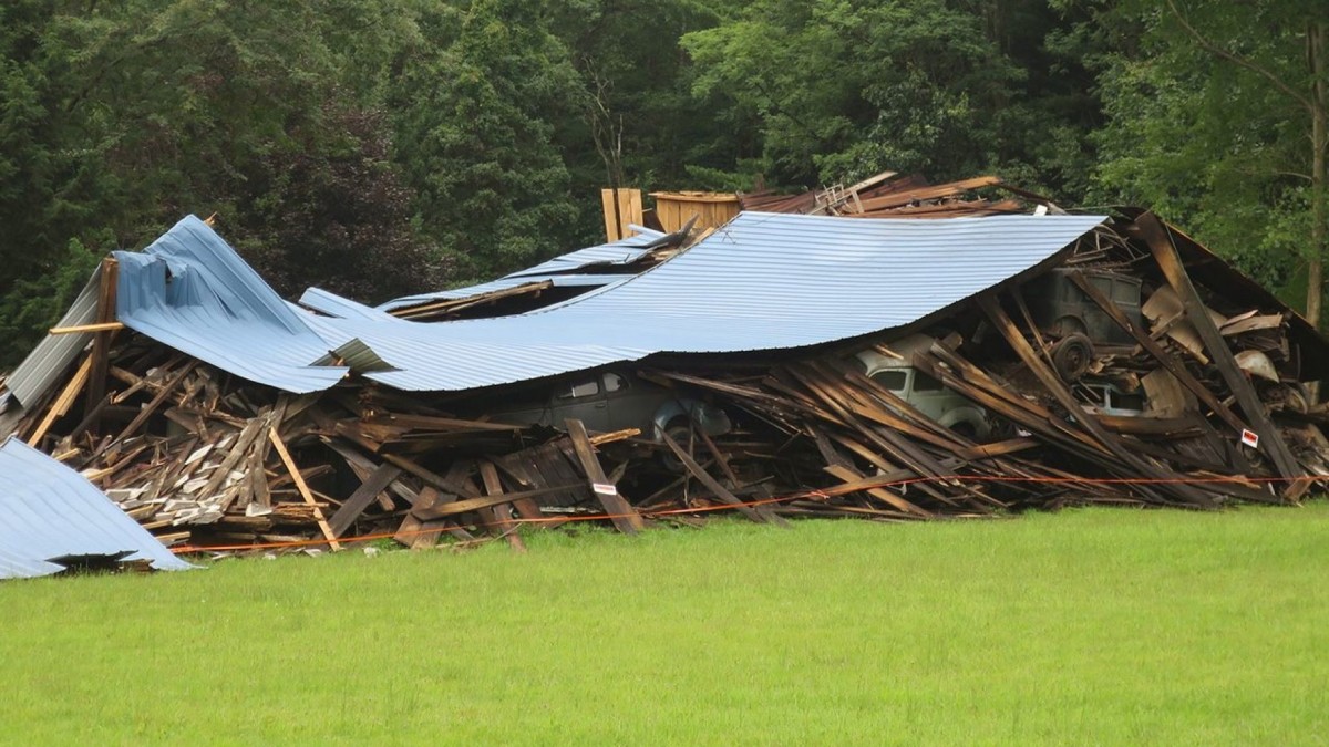 A summer storm produced tornados in the area. I wonder if that is what brought the building down?