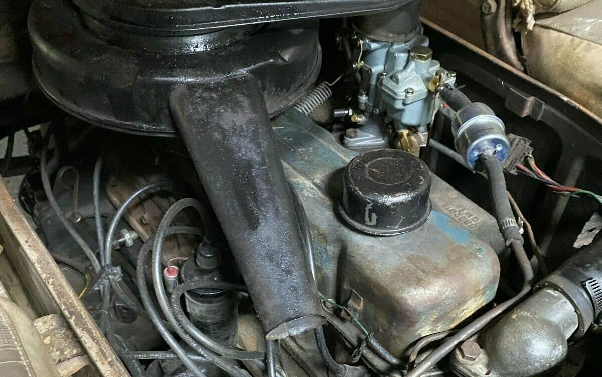 The engine is a 230 cubic inch straight-six with a rebuilt 350 automatic transmission. The engine has the following new parts: gaskets throughout, oil pump, fuel pump, carb, and ignition parts. The seller says the exhaust is quiet and based on the information in the ad, it sounds like it runs well.