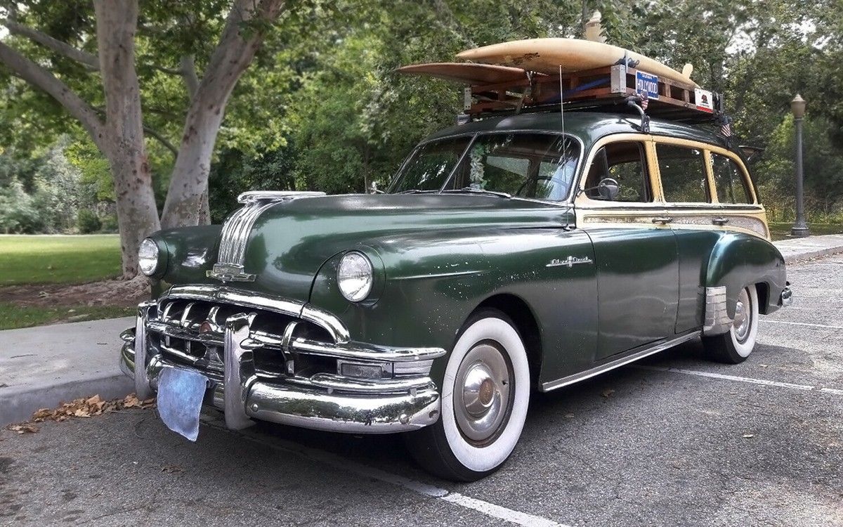 A beautiful 59 Pontiac Bonneville convertible yesterday and today a really nice 50 Pontiac wagon. Yes the seller can keep the surf boards.
