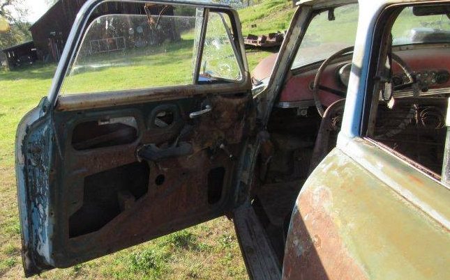 As for the interior, it’s hard to say as it’s not photographed other than this glimpse through the driver’s side door. The door panel is obviously missing but that’s probably the least of one’s worries when it comes to performing an interior restoration. One other image shows what looks like a lot of detritus piled up inside so I’d assume the worst – the interior is probably as disheveled as the exterior.