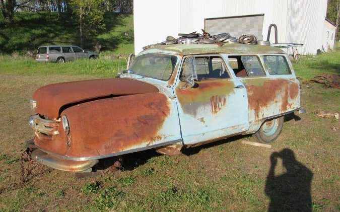 I have always found these Nash Airflyte models to resemble a bumper car though this sad example looks more like a bumpee car. The few images will have to do the talking as there really are no listing details. All ’51 Nashs incorporated “Airflyte” aerodynamic styling with the Rambler series being the smallest and entry-level model. Regardless of body style, all Ramblers came in two-door body styles only. Station wagons were offered in both Suburban and Custom trim though the condition of our subject car makes specific determination difficult. Safe to say, it’s missing lots of stuff, and what’s there is not in the best condition though extensive rot does not appear to have taken over just yet.