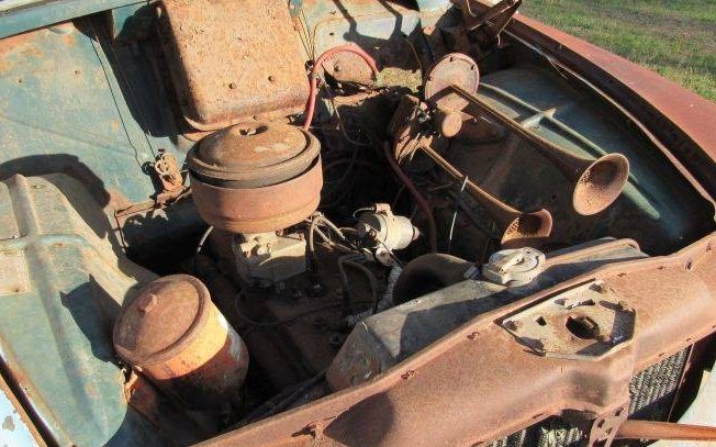 Definitely, a non-runner, the 82 HP, 173 CI in-line, six-cylinder engine probably hasn’t turned a lick in many moons. It does appear to be complete, however. The mileage is listed as 76K miles but the seller mentions that the odometer is a rollover, so, 176K miles perhaps? A three-speed manual transmission was the only game in Nash Rambler world in ’51 though an overdrive option was available.