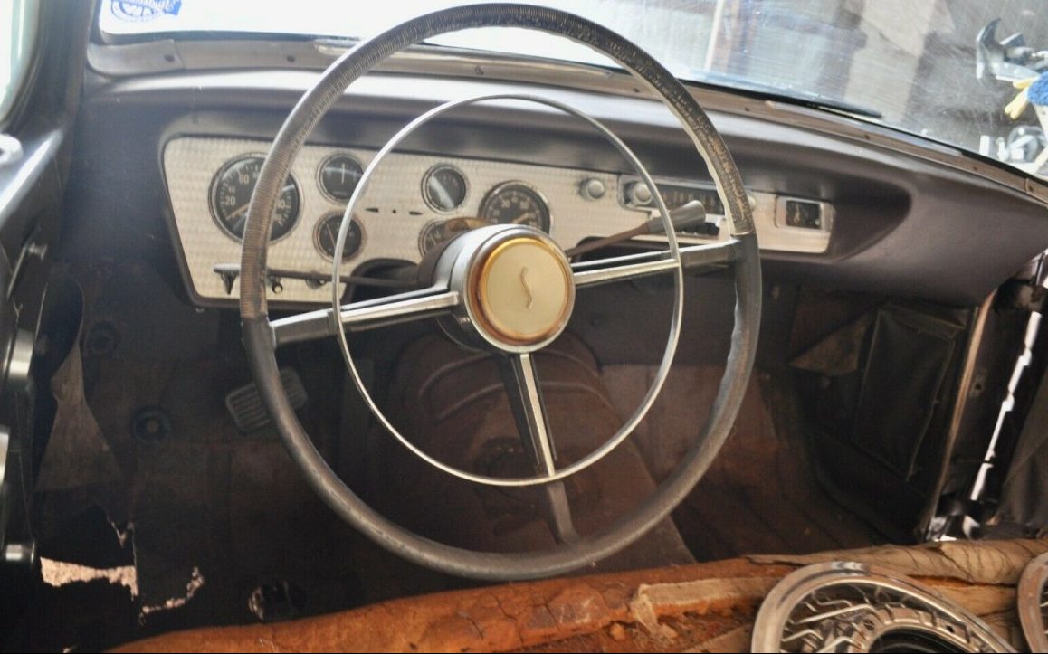The abundance of brightwork continues at the rear, and you can see what might be the optional diamond-quilted top-grain leather upholstery. The front shows more wear on the seats, and you can thank the seller for bravely pulling back the carpet to show surface rust and a few holes in the floor panels. While the later finned Golden Hawk may get most of the glory for this body style, this ’55 President will look fabulous after it’s fixed up and put back on the road. What’s your favorite Studebaker?