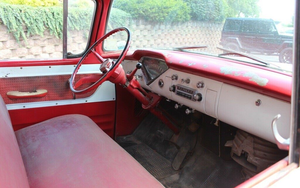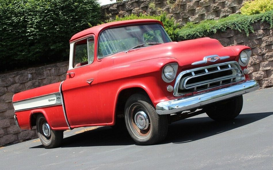 In sold my 57 in this livery last year for $55k,driver quality 350 truck.Still working on 55 driver,and 56 Ultra show truck (long term project).This feature truck is unlikely to sell below mid 30’s,as it is some detailing, and a paint job, away from the next tier,fifty to seventy five thousand dollar rig.As is,it’s possible that 2 ole boys could want a survivor bad enough to bid it to 50 grand now.A cameo (or GMC Suburban Carry All )is not your ordinary pick me up truck .