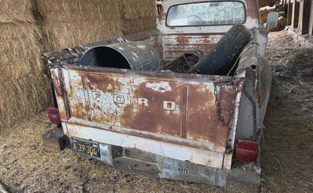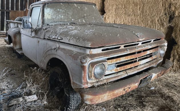 UPDATE – This 1962 Ford F-100 4×4 Flareside is listed for sale again, just a couple of days after the listing disappeared and the truck reappeared. It’s shown outside the barn this time, and is wearing new wheels and tires, and was cleaned up. It’s posted here on eBay in Gazelle, California. There is still an unknown reserve, and the current bid price is $3,000. Will it sell this time or disappear and reappear again looking even more different next time?