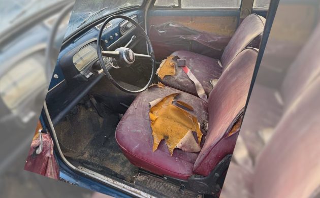 This car looks amazing, condition-wise. We don’t see the underside, and I’d bet that there is some rodent damage in spots due to sitting in a barn for decades. The body really looks nice, I dream about buffing old, dull paint like this, is that a sickness? Fiat made the 1100-D from 1962 through 1966, and they only came in a four-door sedan and four-door wagon. I wonder what a two-door wagon may have looked like? The rear cargo door opens from the right side and is hinged on the left, for a crowd-gathering display at the next Cars & Coffee event.
