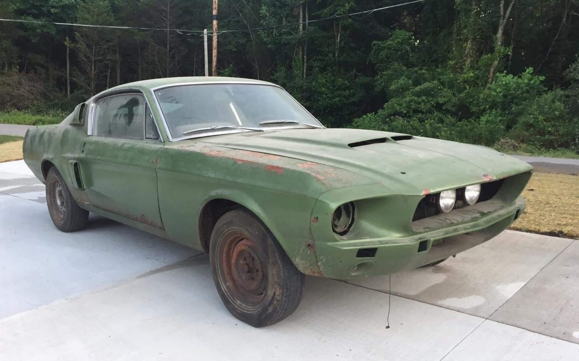 It’s not a real shelby stang, it’s obvious someone again trying to pull the wool over the eyes. Zoom in on that side qt panal that’s definitely handy work of a amateur bodyman throw on some bodyfiller.