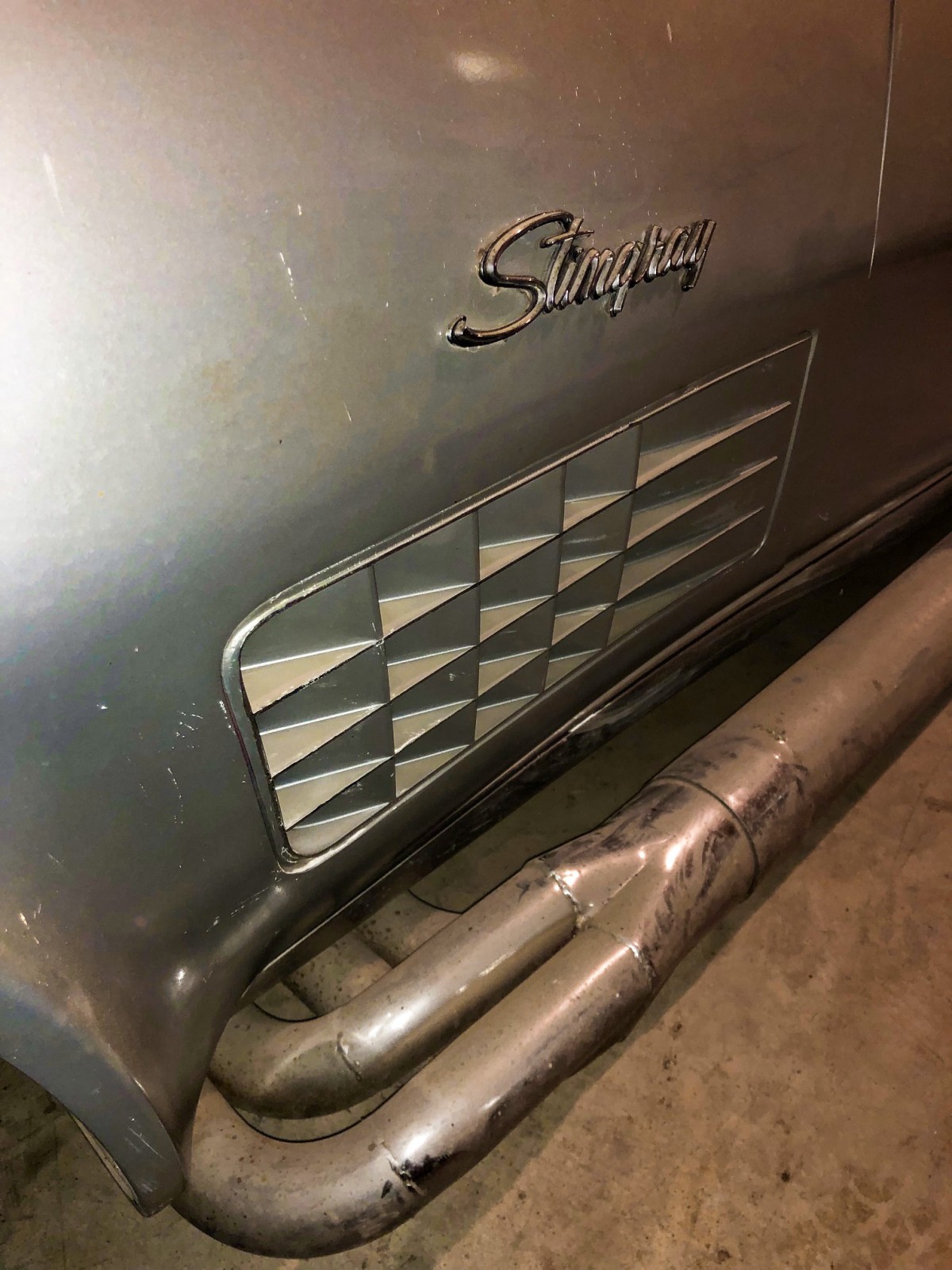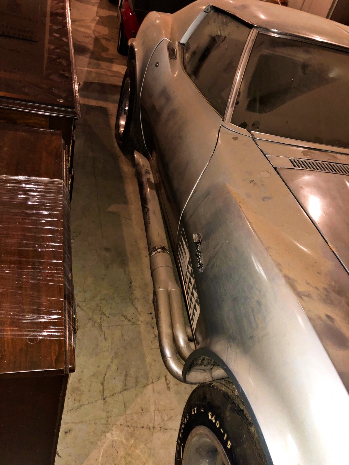 Ever drive a big block Corvette like this more than 10 miles with those stupid side pipes? I have. The guy parked it because he went deaf ! Who ever welded those pipes on there was on glue. I could weld better when 12. There’s nothing wrong with the fender wells BTW. Jim is right EVERYTHING ! on the car needs attention. This things a mess. Who can say why people do what they do with their cars. Maybe some people think that if you put a car under cover for 45 yrs. than go to sell it the thing well still start up and go like the day you shut it off. That’s dust on the hood. This car will bring big bucks. I’d have to fly back and look at it before I’d bid on it. There’s only a few C3’s I’d really want and this is not one of them. I don’t like big blocks much. It was a sad day when GM stopped making fuel injection in favor of cubic inches. But don’t get me wrong I love this car just because it is a Corvette ! and looks to me like its all most all there Ask the guy about the shielding. Hopefully its sitting in a box there somewhere. With some good old hard work this will clean up ok. good luck to the new owner !………………………………….JIMMY
