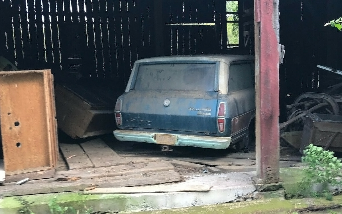 Both Travelalls are rear-wheel-drive, one is a 1010 and the other is an 1110. Both have been in that barn since 1979 when the owner drove them in and parked them and that’s all the seller knows about them. They both need a complete restoration but they look relatively solid. Still, parked on an organic (dirt, stray/hey, etc.) floor for over four decades can’t be good for anything, let alone something made out of steel.