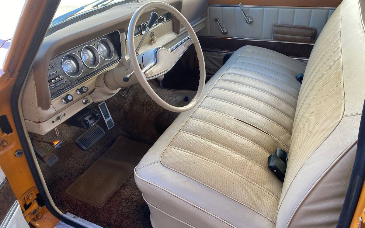 The seller says that this is a Dodge 360, but I’m guessing that it’s an AMC-sourced 360-cu.in. OHV V8, which for a California truck would have had around 195 horsepower and 295 lb-ft of torque. The VIN shown in one of the seller’s photos matches up on VIN decoders as a 360 with a four-barrel, and it sure looks clean. This Jeep looks like a very nice project. Hagerty is at $20,400 for a #3 good-condition truck so there’s a lot of room to make this one right again. Any thoughts on this Jeep? The engine size or maker? The condition? Color? Anything? (too many questions?)…