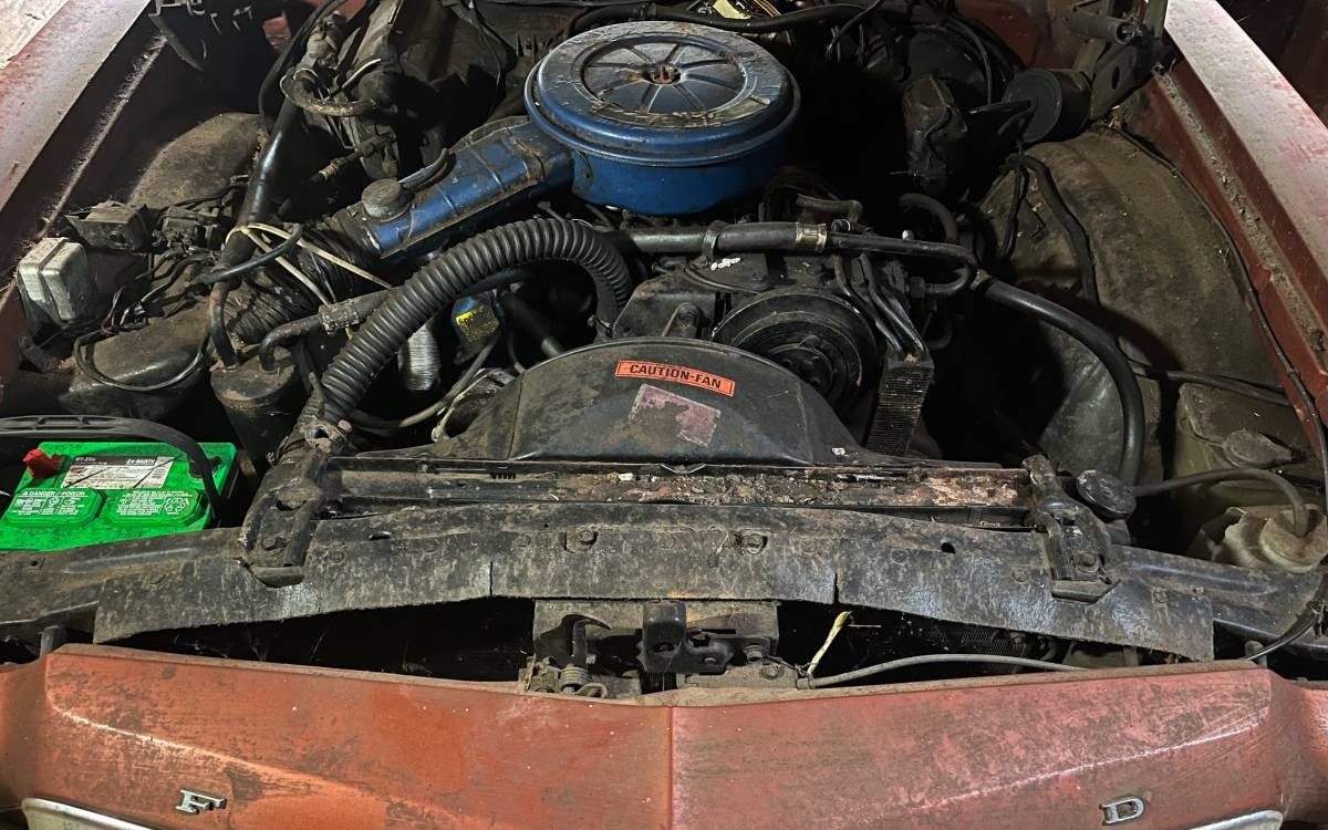 Although the tenant abandoned this Gran Torino, they apparently left a paper trail of maintenance records that indicate that the transmission was rebuilt and a new engine was installed in the early 1990s (the engine has a mere 7,000 miles on it). The engine itself is a 351 Cleveland two barrel (a $46 option over the base 302), which produced 162 horsepower in that dark year of 1974. Sadly, 1974 was the final year of Cleveland production; from then on, only the Windsor and Modified 351s were available. The Cleveland was simply introduced a few years too late to be Ford’s long-standing mid-range muscle car engine, though it did have a long life on the racetracks of America.