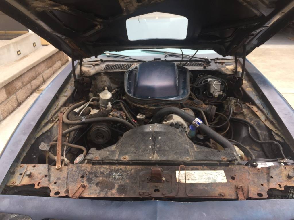 The Trans Am wears great colors, too, avoiding the usual combo of black-bodied Trans Ams with the yellow thunder chicken on the hood. This one is navy with the same aforementioned graphics, and although the paint is faded, the seller did a decent job at trying to refresh the long-neglected finish. While it’s pretty evident from the outside that the body is in good order, the seller confirms that the structural integrity of the Trans Am is without question, as there’s zero evidence of rot-through in the floors, frame, or even the vulnerable trunk floor. There are some small dents in the rear quarters and isolated patches of surface rust.