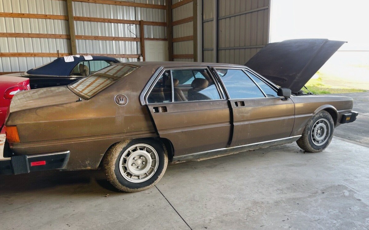 We don’t usually think of an actual barn find as being such an exotic and sometimes scary – as far as often delicate and complicated components go – vehicle as this 1982 Maserati Quattroporte is, but this is the real deal. The seller has it listed here on eBay in Independence, Oregon and the current bid price is $2,600, but the reserve isn’t met yet.