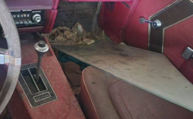 The history of the AMX isn’t known, but it saw enough use over the years to have the odometer turnover (something you don’t see on newer cars since they went from five significant digits to six). The body is full of dents, and the hood isn’t in the photos, but the seller says it’s there somewhere and will go with the sale.