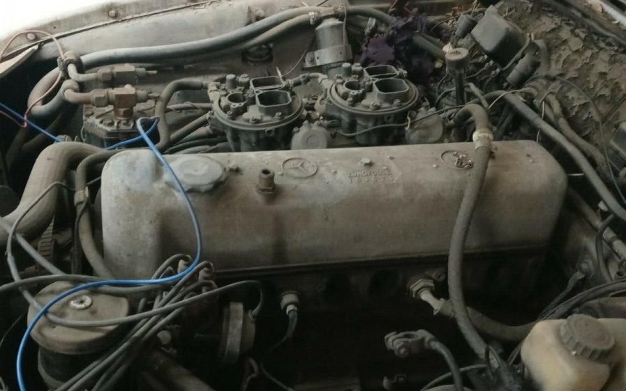 Hmm— usually E meant fuel injected in this vintage of Mercedes. Twin carbs is not ordinary. Is it an engine transplant, or a Euro option? There really ought to be a vin number stamped somewhere, but maybe the owner really does not want to find it?