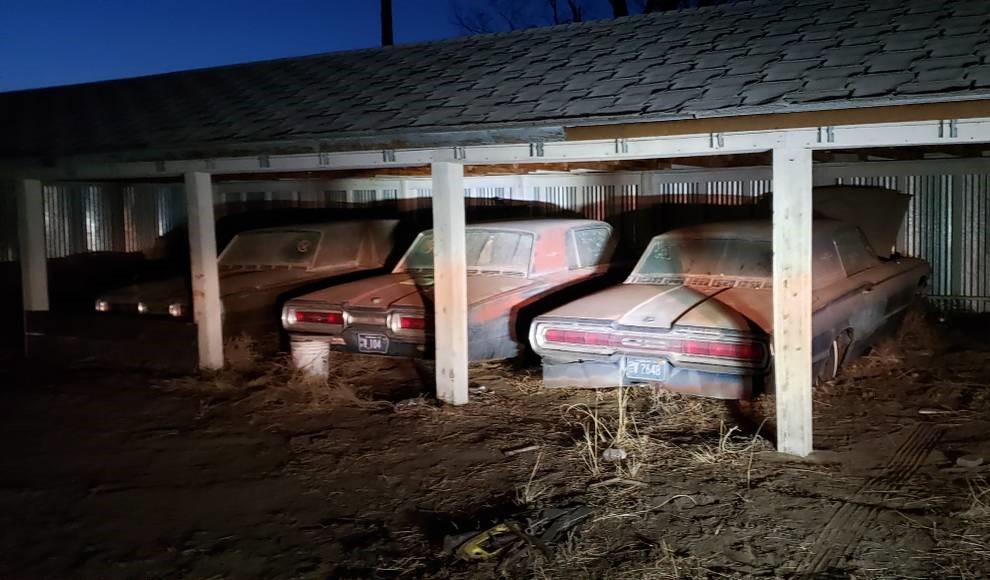 1964 – or 1965; there is at least one red T-Bird in there, but there could be two; condition undetermined