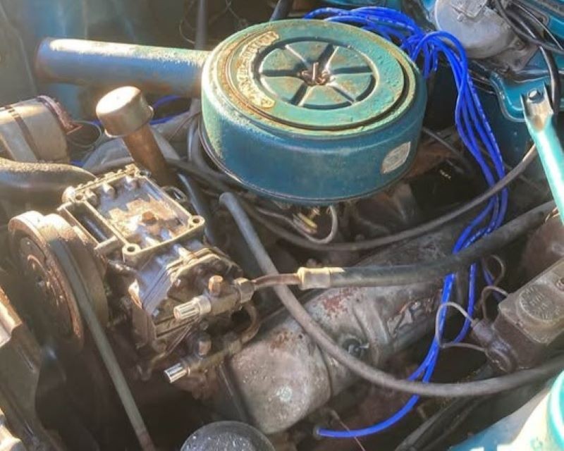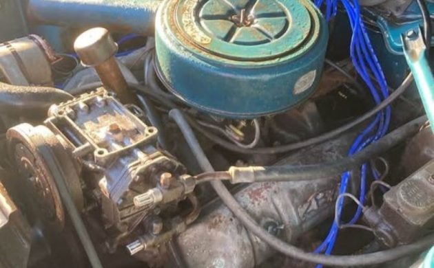 The seller tells us that the 198 HP, 287 CI V8 engine “Has a hard time starting sometimes. Has to do with the pump on the carb. It has been rebuilt but sometimes doesn’t pump the fuel.” He also states that “it does run and drive.” One improvement added is the upgrade of the ignition system to a breakerless arrangement. A column-shifted three-speed automatic transmission makes the rear wheel connection.