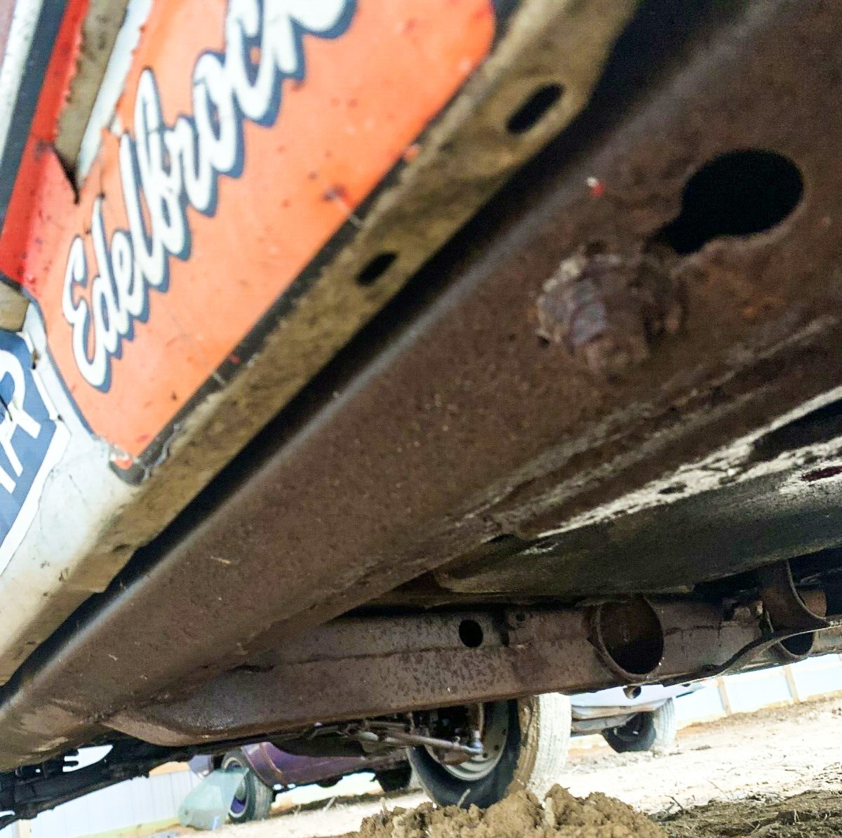 The 12 bolt’s not a big deal, because the stock rear’s all there, and nothing looks cut up to put the 12 bolt in. I don’t see anything about the body that scares me, or looks like a major repair, and from what can be seen of the frame, it looks like typical surface rust to me. The car does look like it’s been stored in a wet environment, and since Manahawkin is along the Jersey coast, and was hit hard by Sandy, it’s possible this car has seen some flood water? Then again, Manahawkin’s location also subjects it to ocean salt air, which can have an effect similar to wet storage.