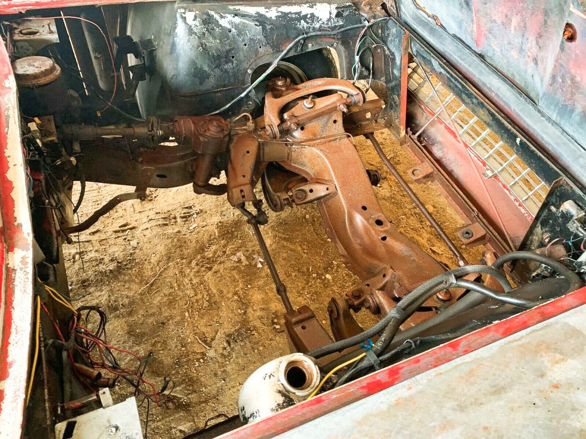 It’s going to take a real act of love or idiocy to take this one on, especially with a starting of $17K. Rear end was converted from an IRC to solid axel, looks like there’s no springs under it in addition to all the body work and paint it’s going to take. Add to that the running gear being gone, it’s going to need to be determined if the frame is salvageable or not.