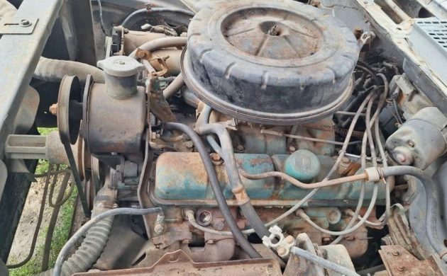 Under the hood resides the Oldsmobile’s factory 394 cubic inch “Rocket” V8 and 4-speed Hydramatic automatic transmission. Surely both need work from being inactive since Y2K. One odd feature is that this car has a pair of police-style spotlights, but why would anyone have ordered them out in the country? Bring a trailer (and some muscle) and take this land yacht home with you.