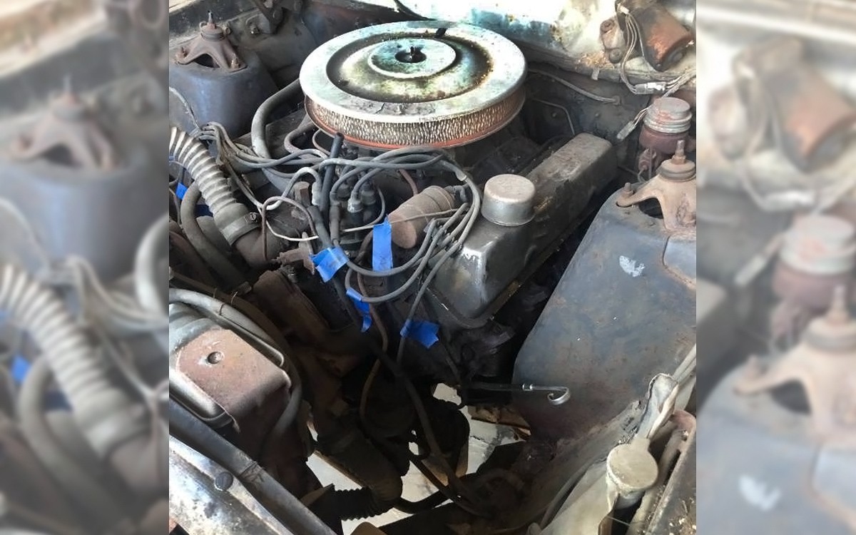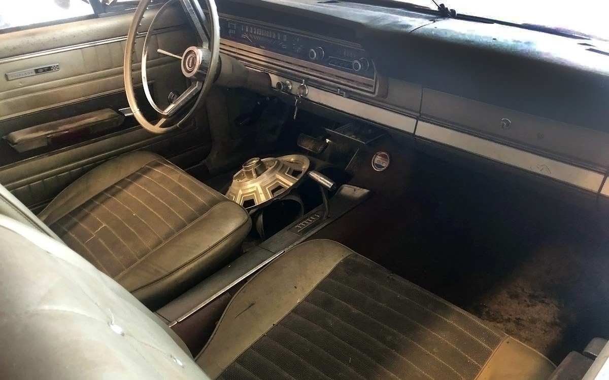 And, there’s the missing RF wheel cover. I love that look, although I get why people switch to some sort of fancy wheel instead of losing wheel covers all the time. You can see the Cruise-o-Matic C6 three-speed automatic with SportShift console shifter there, which you should since this is a GTA (A = automatic). A 3-speed or 4-speed manual would have been available in the GT version. The interior looks surprisingly nice in this car, other than being super dirty and there being a couple of cracks in the top of the dash. The back seat looks perfect. It would be fun to clean up this interior – take out the seats and as many things as you can, put in new sound-deadener under new carpet and in the doors and then put back everything else after cleaning it up to look like new. Hopefully, the floors aren’t rusty, there’s no mention of rust anywhere in the listing but some of the exterior detail photos show surface rust if not more.