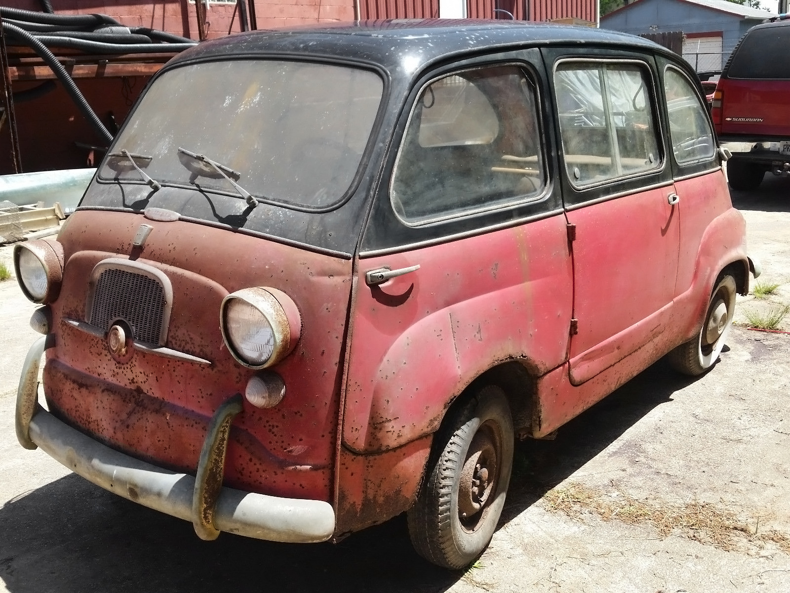 This looks EXACTLY like my very first car! I bought my black and red 1960 Fiat 600 Multipla in San Diego for $50. I eventually gave it a rattle-can flat-black paint job, installed psychedelic black and green curtains, and sold it to a hippie for $200 when I joined the military in 1968.
