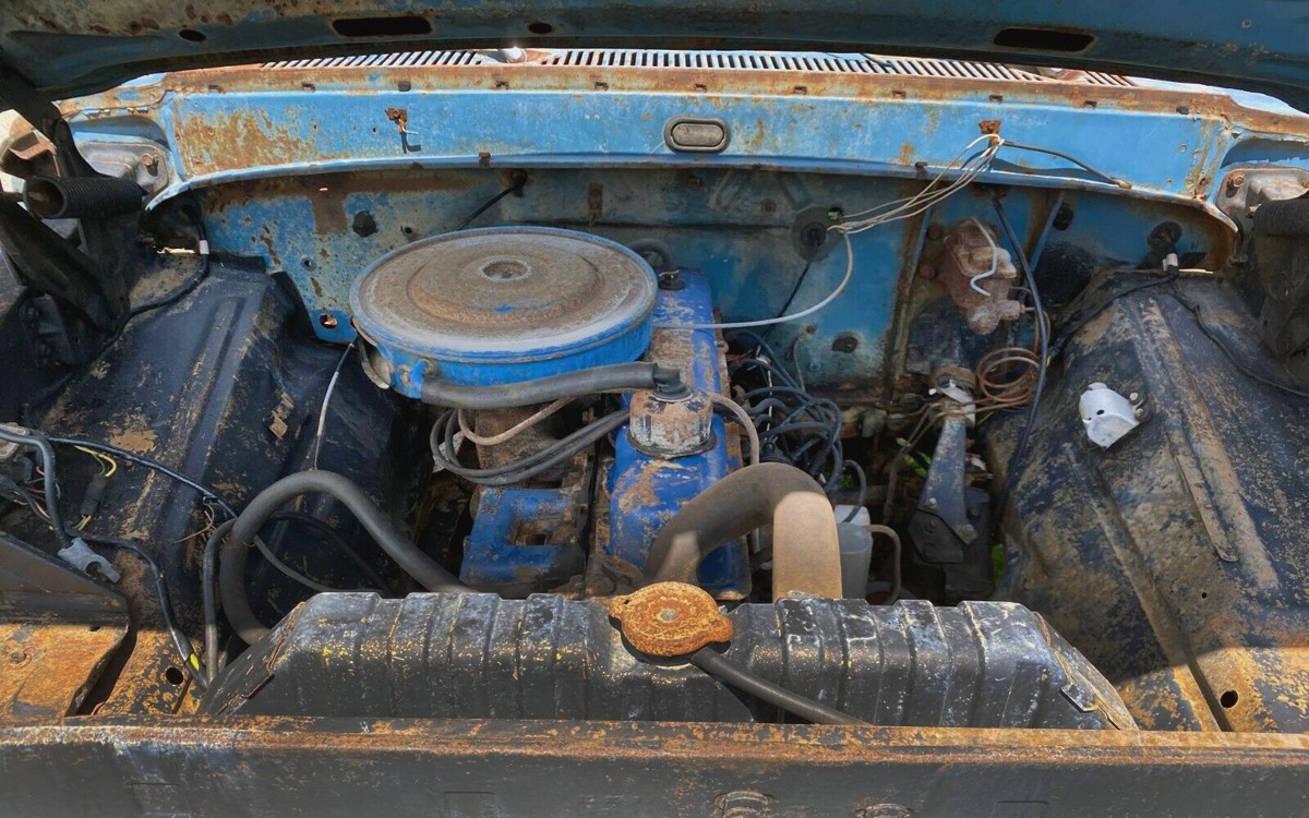 There is no photo showing the inside of the box and I’m guessing that it isn’t pretty back there, given the amount of rust everywhere else. But, there is an engine photo! They don’t say what it is but in decoding the VIN from a photo that they thankfully supplied, it’s Ford’s 240 cubic-inch inline-six. Of course, it isn’t currently running but hopefully it’ll be running again. How would you bring this one back? Full body and paint with a V8 or keep the “patina” and 240-six?