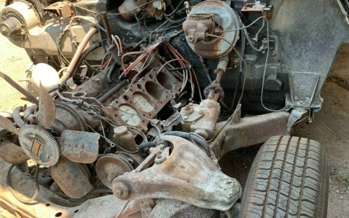 This Corvette, at one time, housed a 327 CI, low horsepower, V8 engine that drove through a Powerglide two-speed automatic transmission. That’s gone and in its place is a 283 CI motor that is either coming or going. It looks more like fuggedaboutit as there are so many missing parts. Even the most adventurous restorer would be better off sourcing a more correct engine than trying to figure out how to put Humpty-Dumpty back together. No word if the Powerglide is still in place or not.
