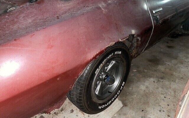 Moving inside, the seats appear like they just might be salvageable with a thorough cleaning, but the door panels, headliner, and dash pad probably won’t. The seller mentions at first that the floorpan and trunk are OK, but then goes back and adds later that after pulling up the carpet it was discovered that at least the front section of the floor is rusted through, and he assumes this extends to the rear seat section and trunk as well. This is the only shot we get to view from the undercarriage, but the frame rails are specifically stated as compromised so there’s work to be done on the bottom side also.