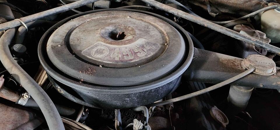 The seller states in the FB ad …I’ve been offered 6500 so far.I plan on getting boys the next few weeks and then selling to a serious buyer only? That’s a little creepy for me.Looks like the air cleaner lid is rotted thru on the top. Saw one last year on fleabay that was in very good condition no rust running driving with the 455 sold for 10k.