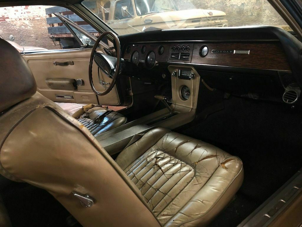 This Cougar wears Grecian Gold over a Nugget Gold interior. The seller points out that the Cougar as shown here was essentially an upscale cousin to the Mustang Steve McQueen drove in Bullitt, right down to the 390 V8. A bit of hyperbole, perhaps, but not completely unreasonable. The Cougar is very original, but this also means some of the factory details need refreshing. The interior has some of the most obvious fixes needed, such as the front leather buckets that are in desperate need of refinishing. The door panels and backseat are said to be in better condition, and the fake wood in the dash looks mint.