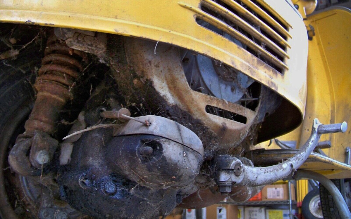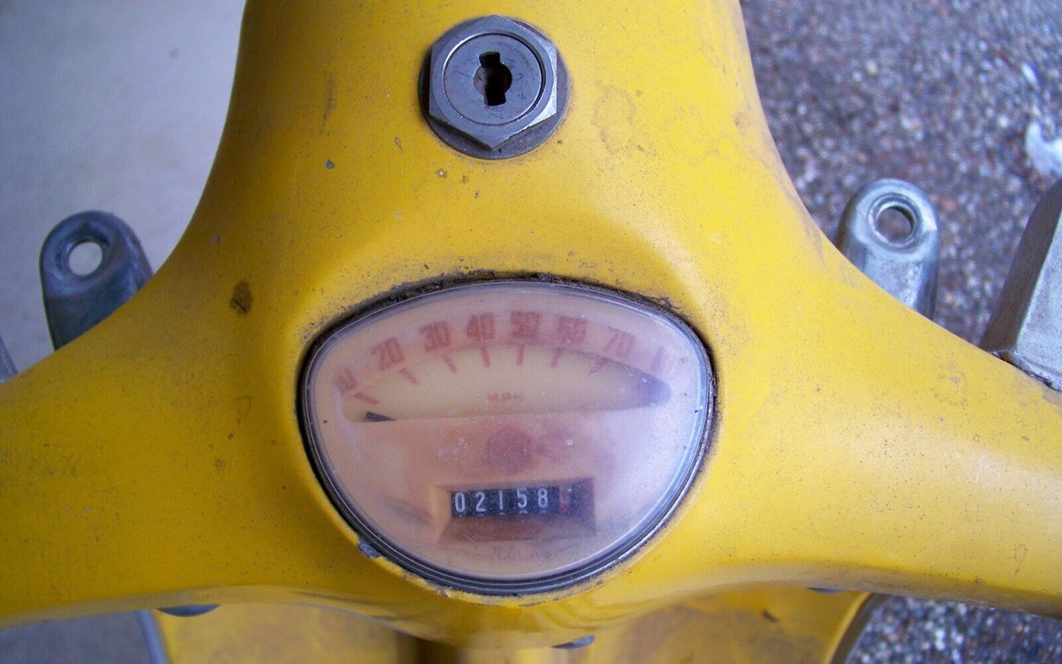 I have never owned an Italian vehicle of any type, not even a Vespa-type scooter. Maybe they’re too stylish or I’m not stylish enough, which is more likely the case. Yeah, that’s definitely the case. I never would have imagined that this lemon yellow color would be an original color but it is. The next owner will most likely want to do a complete restoration of this scooter so they’ll be matching this Giallo (yellow) color if they want to keep it original spec.