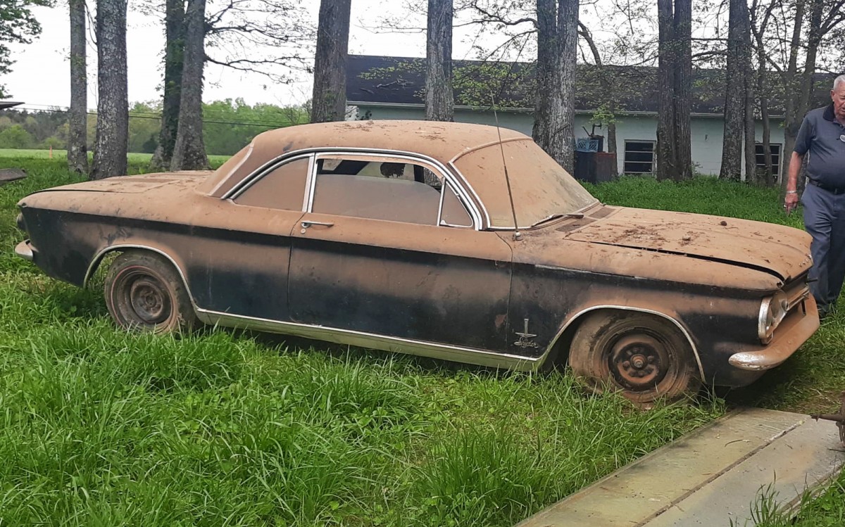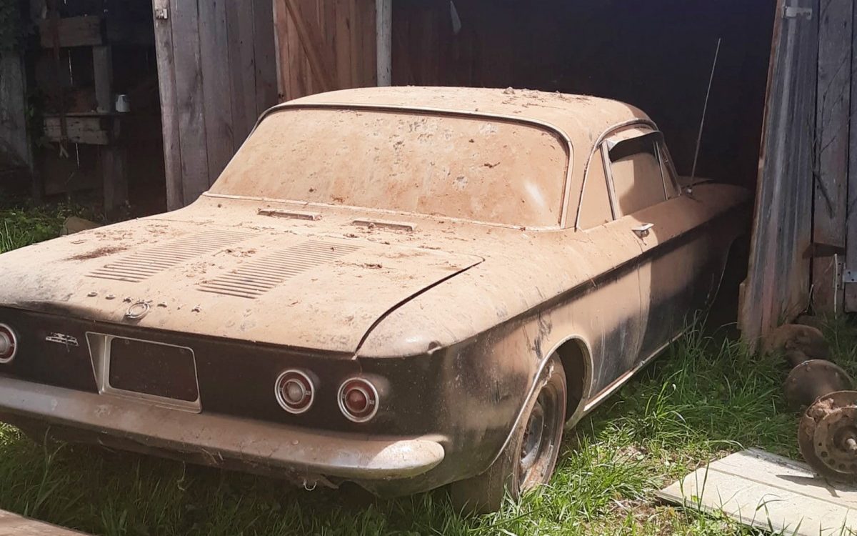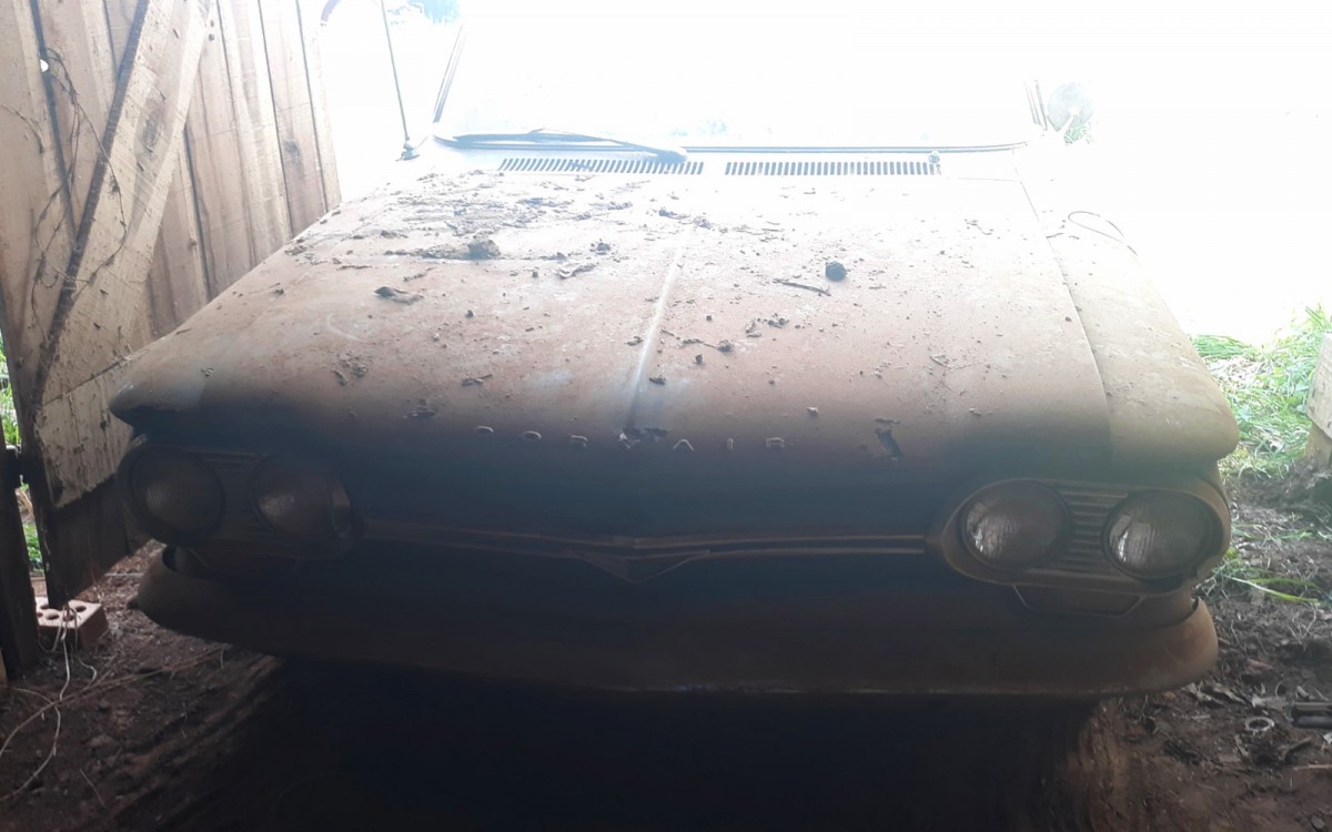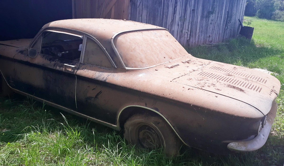As a tow truck driver, Reader Randall L gets to see all kind of interesting vehicles. He recently got a call to move a client’s most recent purchase. When he arrived at the pickup location, he discovered that he was hauling a barn find! This Chevrolet Corvair hadn’t moved since 1967 and was part of an estate that had just been liquidated. The new owner had him load it up on his rollback and drop it off at their house, but that’s all Randall knows about the car or its fate. Hopefully, they will be able to get it back on the road! As soon as he saw it, he knew he needed to share photos of it with the Barn Finds Community!