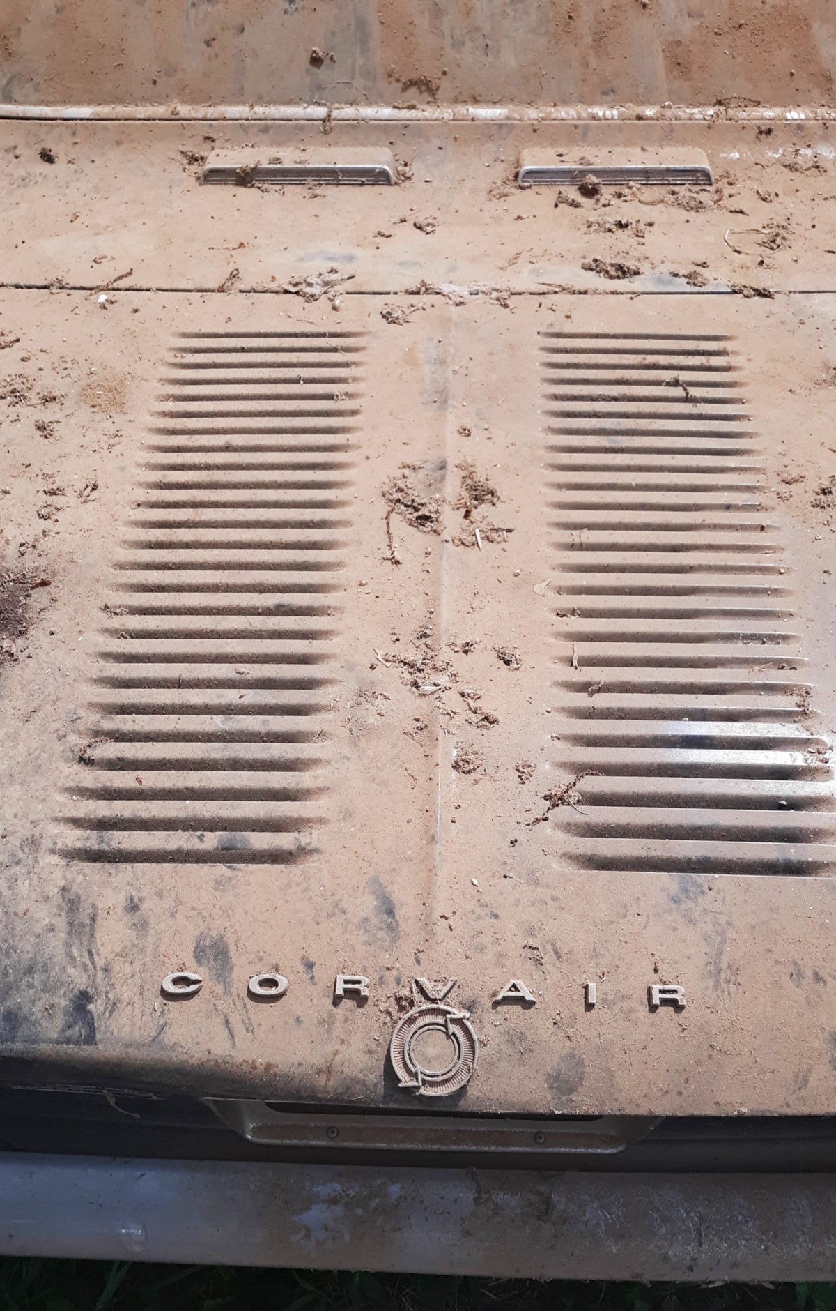 I think this car is part of a larger collection of field Corvairs in Tennessee that was liquidated as a whole group to one buyer. This must be one of the last they pulled out…sure looks the part with all that dirt on it and dried up rubber for tires. Funny, I thought the Spyders had a distinctive steering wheel/horn button but this one appears to have just the Corvair (or maybe Monza) badge in the center. Nice find!