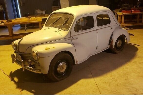 It seemed that there was a post-war competition between French vehicle manufacturers to see who could produce the quirkiest car. Citroen probably won with the 2CV, but Renault wasn’t far behind with the 4CV. Initially developed in secret during the war as a 2-door, the car morphed into a 4-door family sedan by the time it first broke cover in 1946. It is also a car that was built with one of my favorite classic design features. I have always been a sucker for suicide doors, making this one an attractive vehicle in my book. This little 4CV has remained hidden away in a barn for many years, and you would have to think that the storage environment has been pretty favorable. Rust is always the great enemy of the 4CV, but this Rejane White example springs a surprise on this front. There is some minor rust in the front floor, but it appears that this could be addressed with patches. The owner doesn’t believe that it is bad enough to warrant immediate attention, but given the reputation that I’ve just mentioned, I would probably tackle it ASAP. Some surface corrosion is visible in a few places, which should also be addressed before it gets any worse. If I were to buy this car, there would be no half-measures. Due to the construction techniques employed on the 4CV, I would probably dismantle the vehicle entirely and undertake a ground-up restoration. These are not a complex car to disassemble, and modern corrosion treatment techniques would allow the buyer to give this classic the chance of surviving intact for another 62-years. The panels wear a few minor dings and dents, but they all appear to be repairable. The chrome is all present, but some of it will require restoration. The glass seems to be in good order, but the seals might need to be replaced.