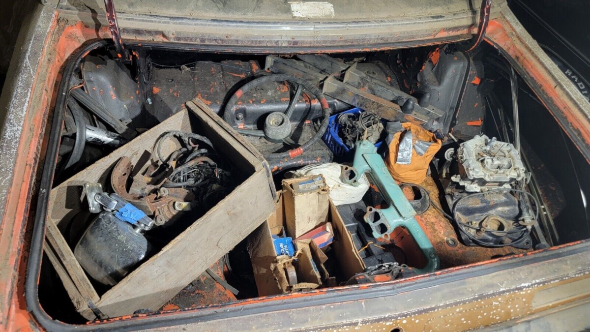 Though covered with years of dirt and dust, the seller advises the body is mostly good. One small dent is present, and rust is limited to a few little holes in the floor and trunk pans. The vinyl top is a lost cause and starting to peel away. And the interior will need a complete makeover including upholstery, carpeting, and the headliner. Someone ripped out the radio, so you’ll have a hole to fill there, too. This could be a neat Duster to restore and may be the dustiest of Dusters we’ve seen lately.