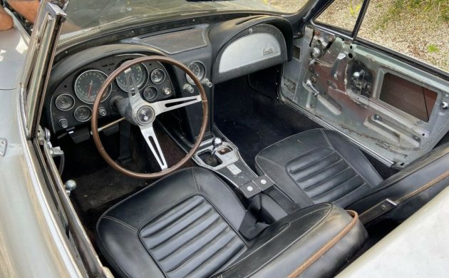I don’t know where the barn was that the Corvette was parked in, but I wouldn’t mind parking my car there. The Silver Pearl paint looks quite good, with no major flaws visible. Of course, the photos might be flattering to deceive, but it does look promising. The only rust that the owner identifies is some surface rust on the frame. It would seem that the car is quite solid, which is really good news. Since being removed from storage, the Corvette has received new bumpers, but the remaining original trim and chrome looks to have held up quite well. The factory hardtop appears to be in good condition, and while a new soft-top is included with the vehicle, the owner has chosen not to fit this.