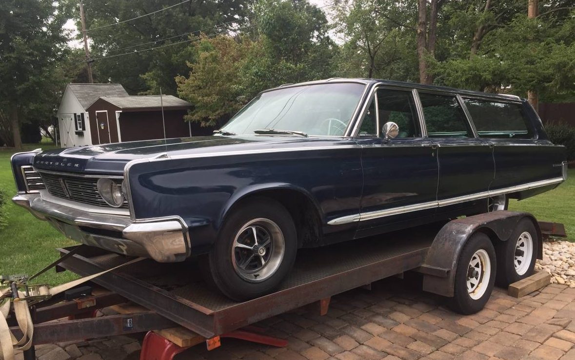 Wagons are hot! Add to that: one owner + original paint + 68K miles + barn find and you’ve got the recipe for an amazing car. This one is a 1966 Chrysler Town & Country and can be found here on Craigslist with an asking price of $8,500. Located in York, Pennsylvania, the car was reportedly sold new in Maryland, so it has probably spent its whole life on the East Coast. The 383 engine hasn’t run since 1976 and there isn’t any information in the ad why it was parked when it was only ten years old. Since it was pulled from the barn, it was cleaned up and looks amazing. Check it out below! Thanks to Barn Finds reader local_sheriff for the tip on this great wagon!