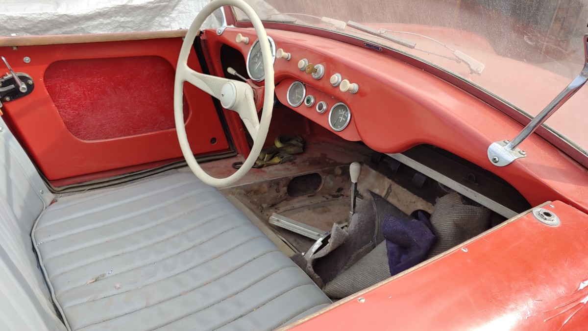 The car was sitting on a perfectly sized trailer in the seller’s driveway with a tarp over it. From the street, you would never have guessed there was a car on the trailer. Once we got the tarp off, it started to sink in just how tiny this car is! It makes a Modern Mini Cooper seem giant and even a Triumph Spitfire would seem big sitting next to this thing. But, that was the point of the Berkeley. It’s an engineering marvel when you consider that it was developed in the 1950s and weighs in at just 700 pounds. Yes, you read that correctly! To put it in context, this car weighs about the same as a dry Chevrolet 427 V8… Just the V8.