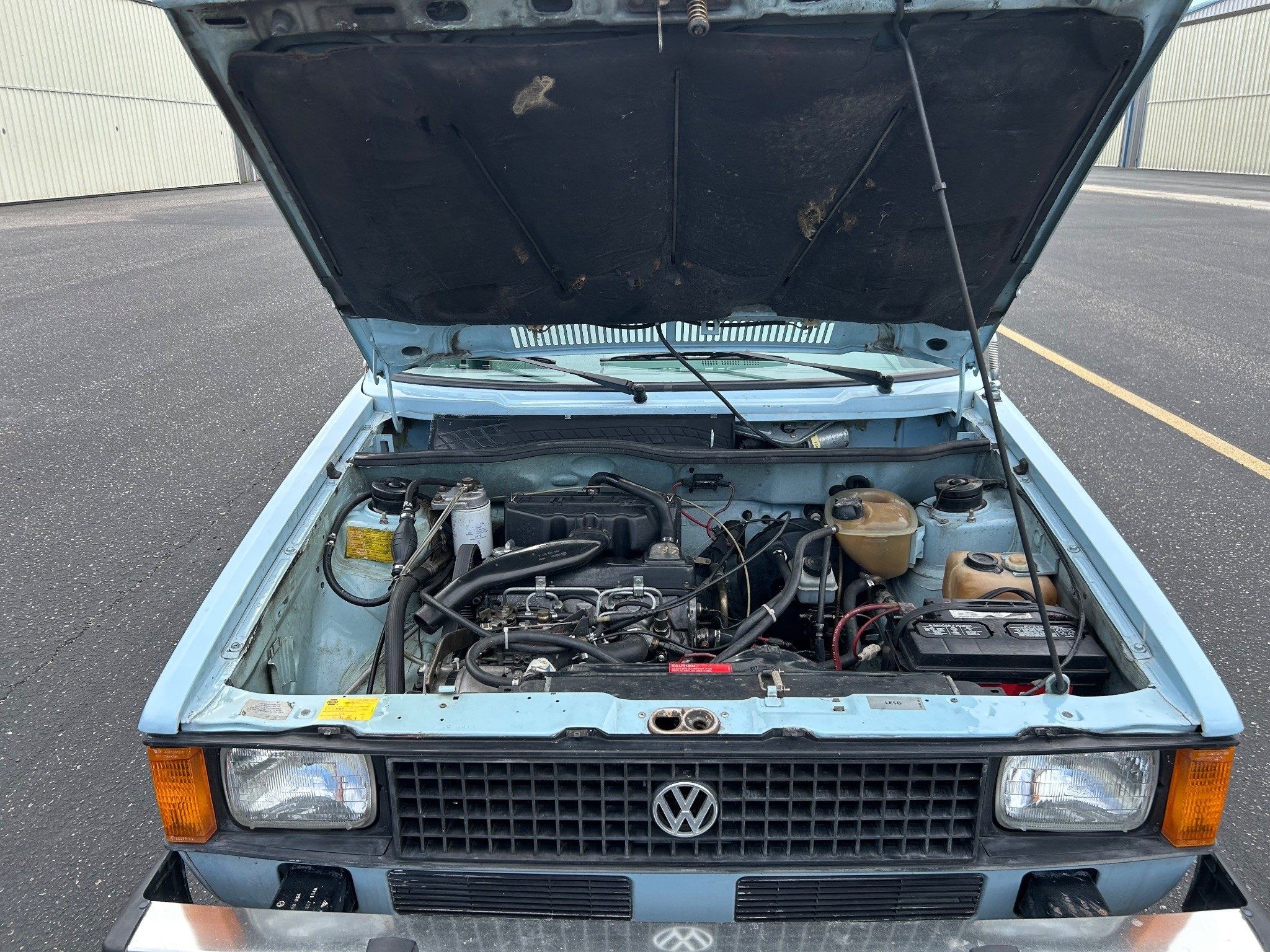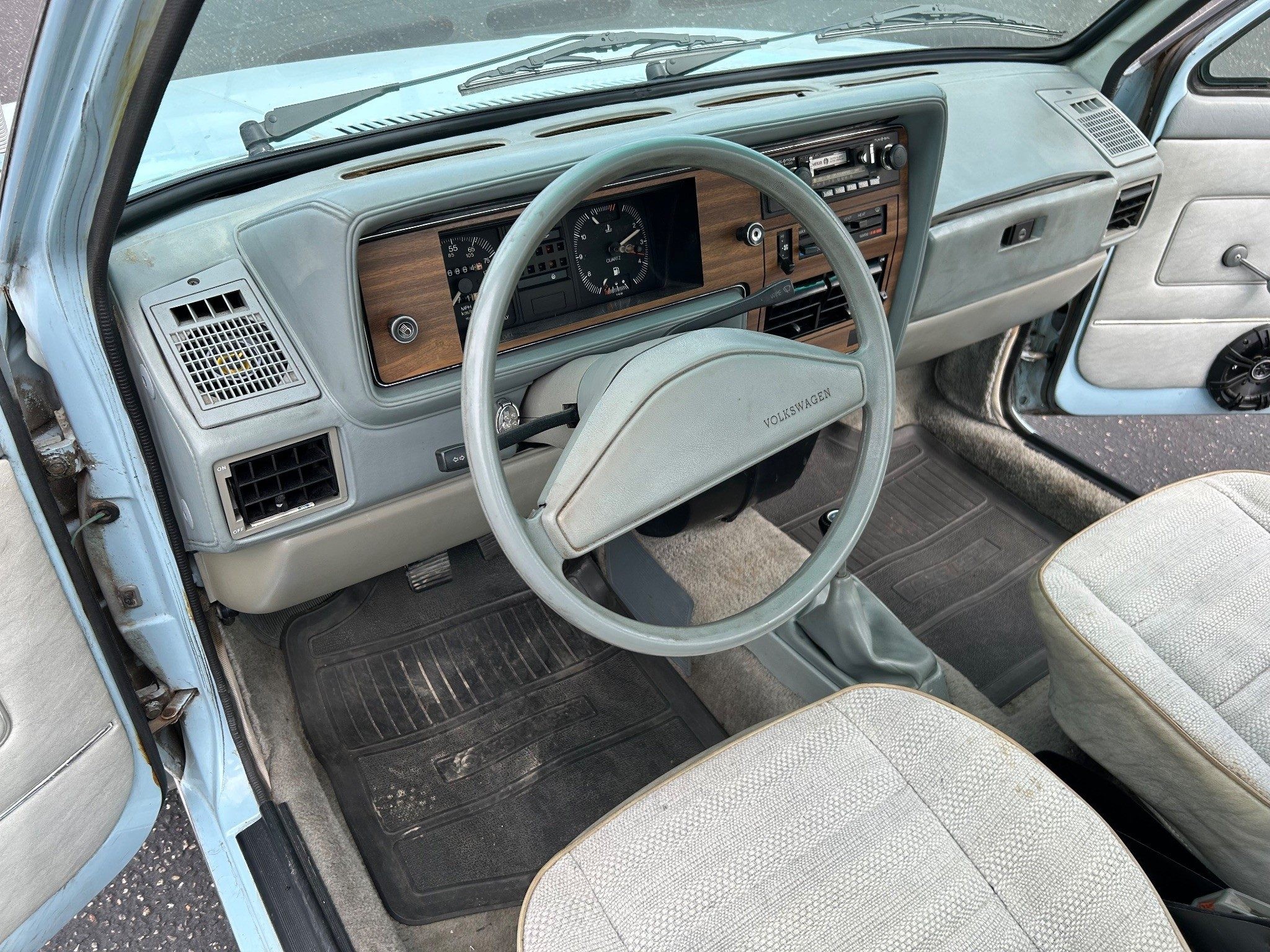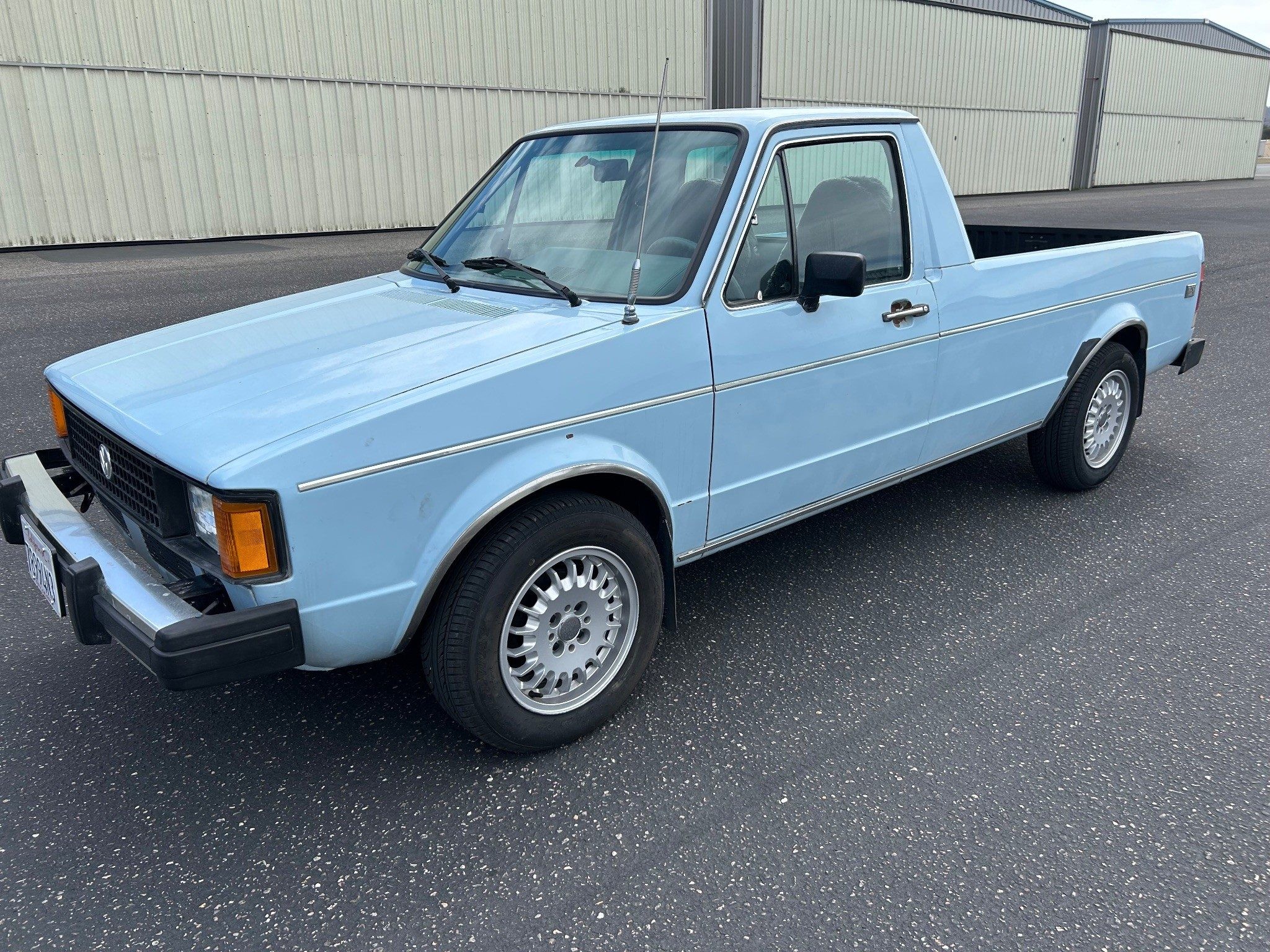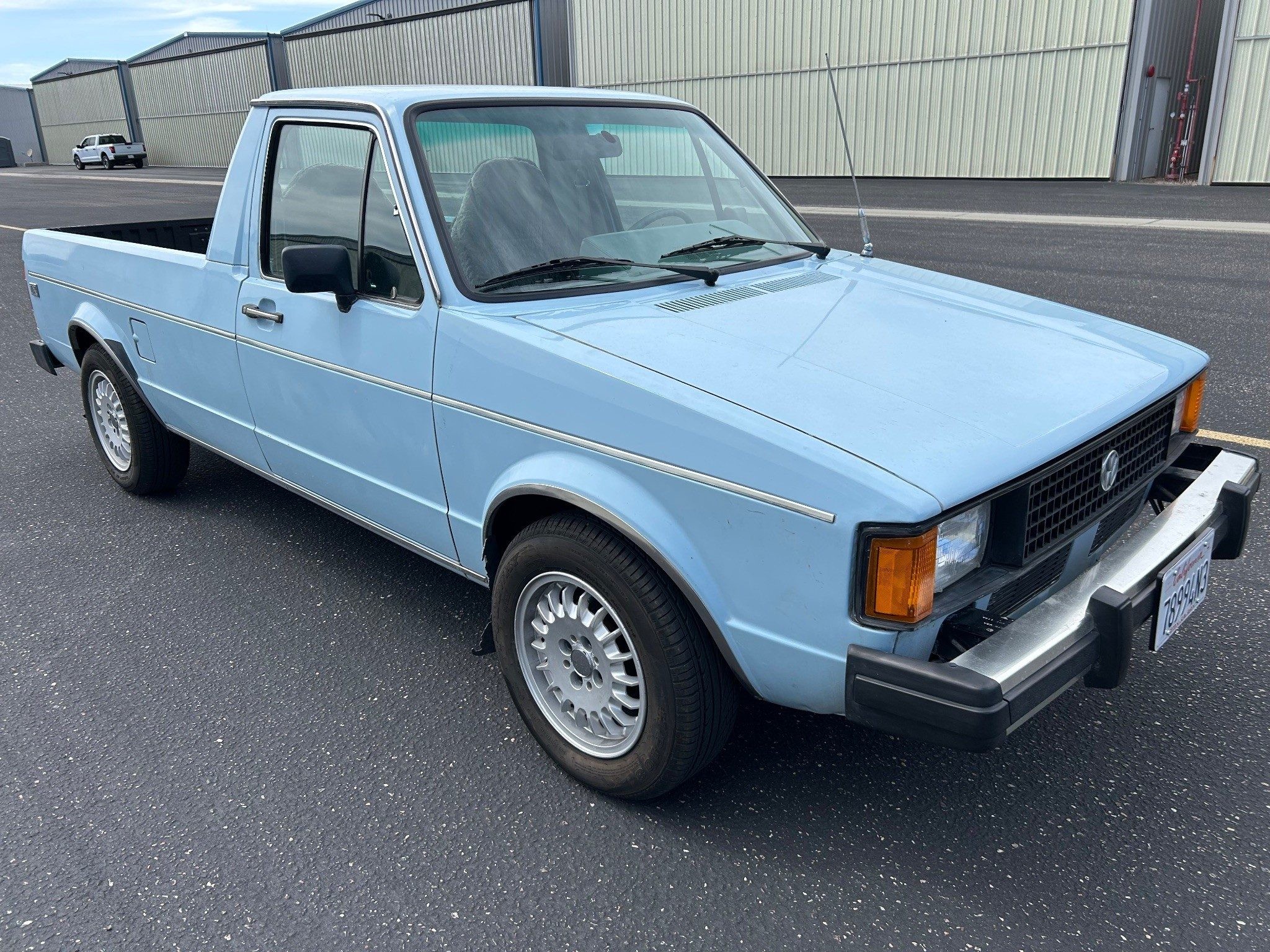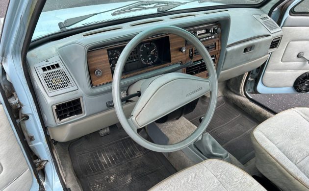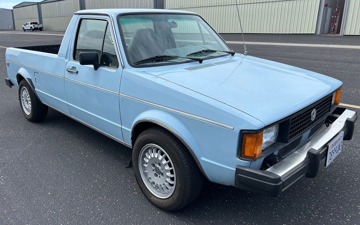 I want to watch this auction as I have a diesel Rabbit pickup like this only in a tan color. The first time I sat it it I felt instantly at home. Seat, shifter, pedal placement were what I experienced with my several VW Sciroccos. The best fuel economy I have experienced has been 45mpg. But then I have NEVER been able to keep the right foot under control. Yes, it handles and rides well. But it still feels heavy to me. (I used to a Scirocco, lowered and equipped with Bilstein shocks and wider wheels.) The BMW bottle cap wheels look ok. Mine is also rust free as that happens when a vehicle has been in Nevada it’s whole life. My interior is a little beat up from the sun. But not terrible.