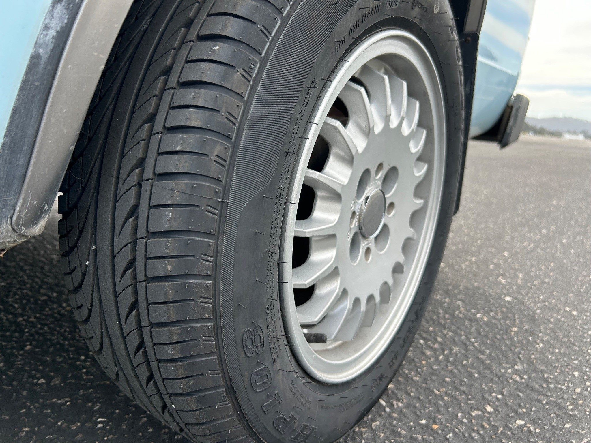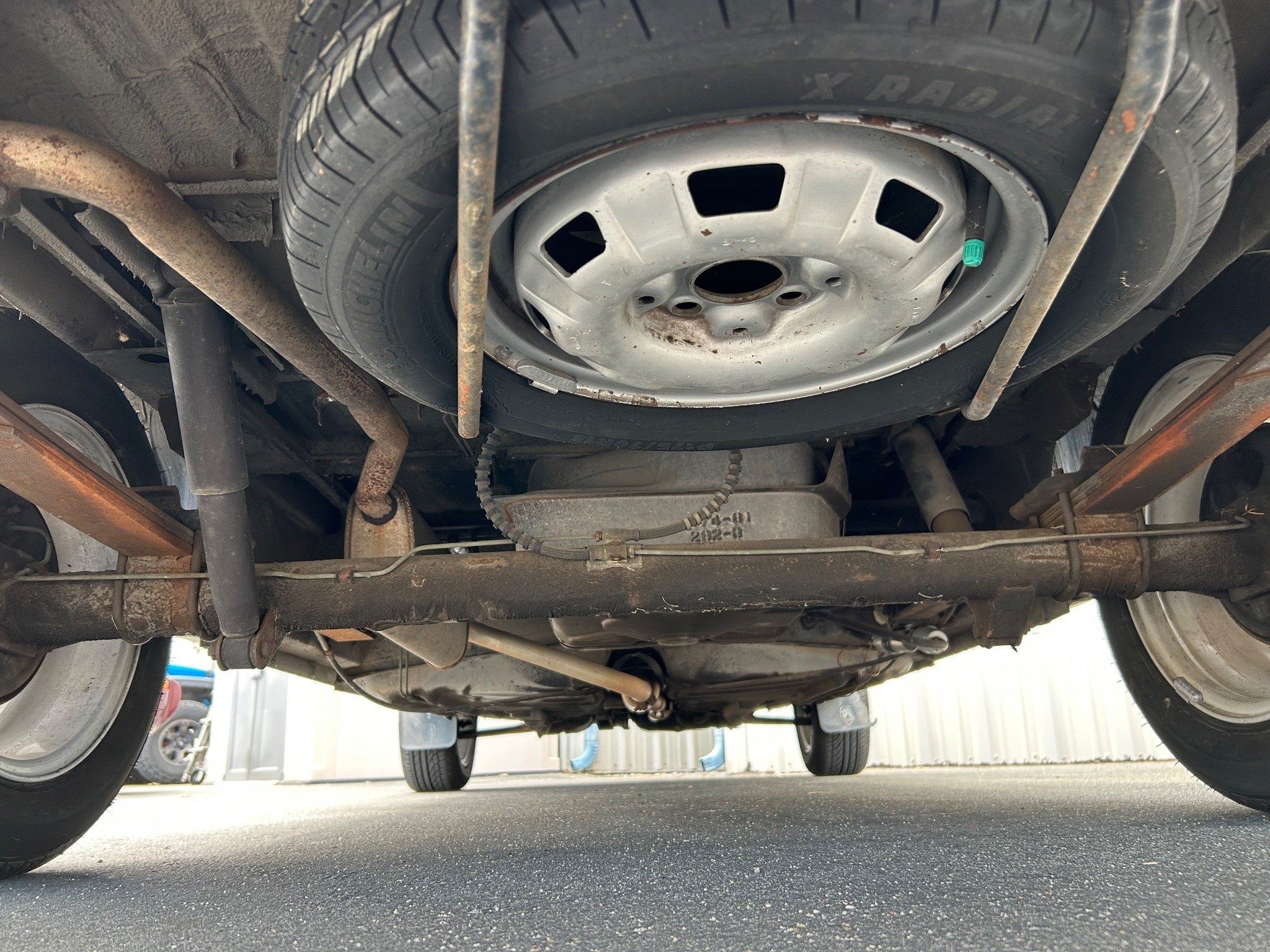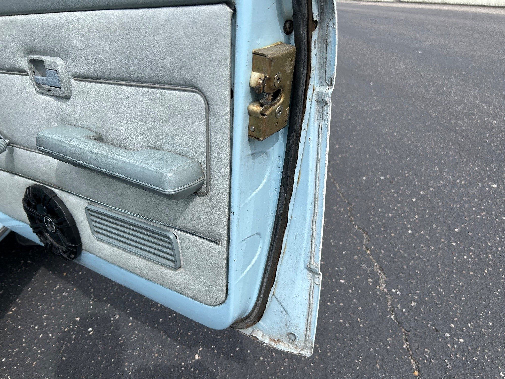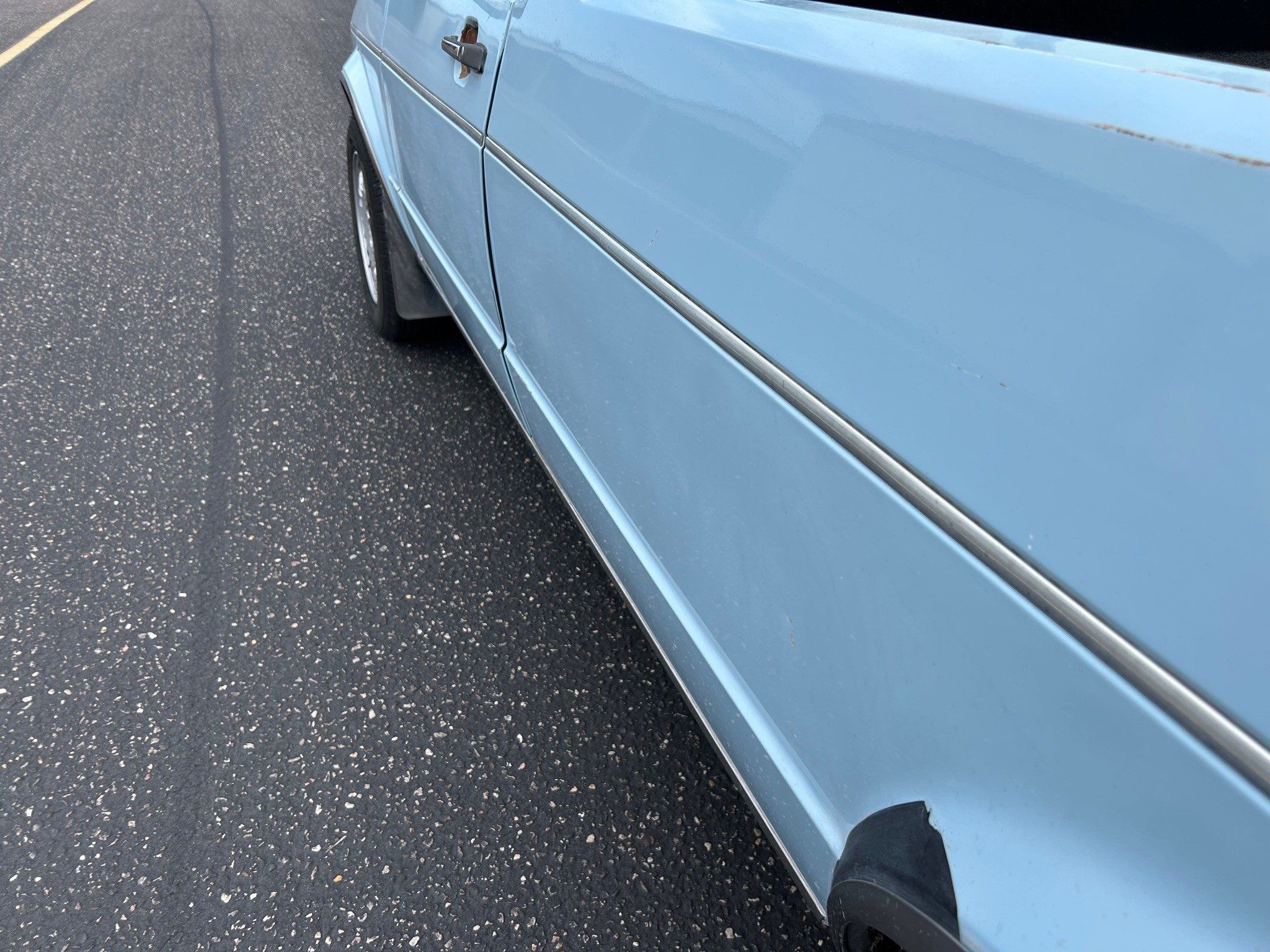 The first-generation “Caddy”, or VW Pickup, was made from 1979 through 1995 here and longer in South Africa. This was it for body styles; there was no four-door sedan pickup. If I had time, I’d whip one out (in an hour or two) in Photoshop just to see how it looked. The seller has absolutely outdone most sellers in providing such great photos, very, very well done! Inside the pickup bed looks nice with a new sprayed-on bedliner. The only thing I notice outside, other than a few normal nicks, is that the tailgate has been repainted. They say it’s wearing its original Lago Blue paint otherwise. Speaking of original, the BMW wheels aren’t original, of course, but the seller is including the original wheels and hub caps with the sale.